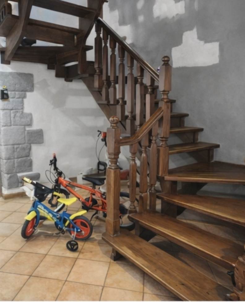 Al piano terra si trovano una zona giorno accogliente, la cucina abitabile e il servizio, mentre il piano superiore ospita la zona notte con più camere e secondo bagno, garantendo comfort e privacy per tutta la famiglia. La presenza di balcone aggiunge ulteriore valore agli spazi abitativi.